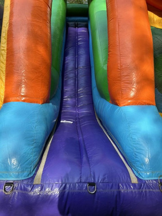 Discover the ultimate inflatable experience with our one-of-a-kind mini obstacle course featuring a thrilling 16-foot slide right in the center. This unique attraction is perfect for all ages, offering endless fun and excitement. Whether you're planning a birthday party, community event, or just a fun day in the backyard, this inflatable will be the highlight of any gathering. Don't miss out on the chance to provide an unforgettable adventure for everyone involved!